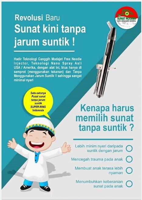 SUNAT MODERN SUPERING lebih 3509 pasien bayi,anak,dewasa yang sunat 100 % Tanpa jarum suntik,tanpa jahit tanpa perban,aman nyaman tidak sakit ,alat sekali pakai, Langsung aktifitas seperti seperti biasanya.