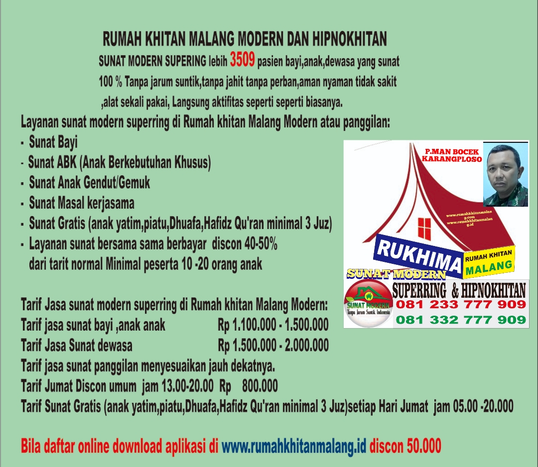 RUMAH KHITAN MALANG SUNAT SUPERMODERN RUKHIMA TANPA JARUM SUNTIK PAK MAN BOCEK