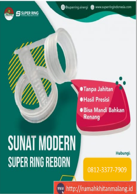 Sunat Metode Super Ring ini diklaim tanpa harus kontrol ke dokter dan 8 hari pasca sunat ring yang berada di alat kelamin si anak yang disunat akan lepas dengan sendirinya. rumahkhitanmalang.id Adanya metode sunat tanpa suntik seharusnya membuat anak tidak lagi takut untuk disunat. Kelebihan dari penerapan metode sunat tanpa disuntik adalah :